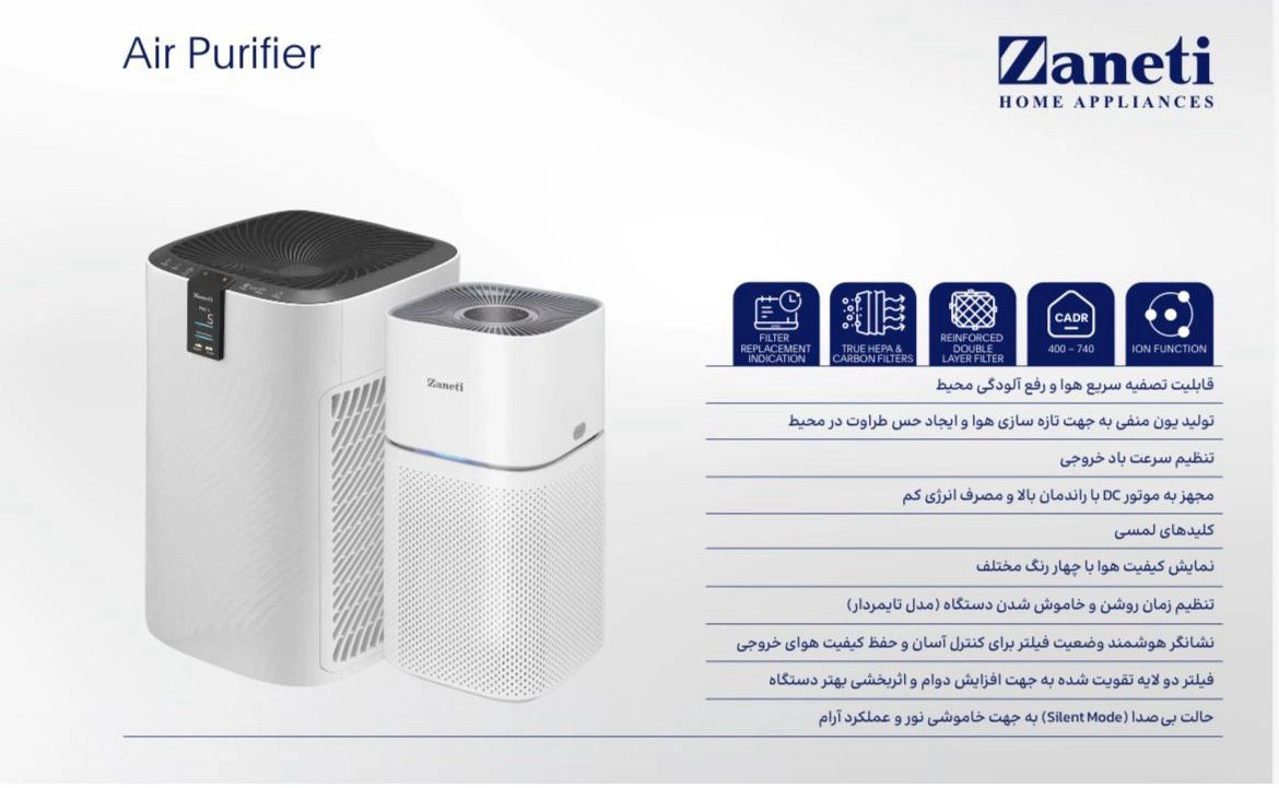با افزایش غلظت آلایندهها در محیطهای بسته و اهمیت تنفس هوای سالم، استفاده از دستگاه تصفیه هوا به یک ضرورت بدل شده است. در بسیاری از فضاهای داخلی، میزان ذرات معلق و آلودگی تا ده برابر هوای بیرونی است، بنابراین بهرهگیری از راهکاری مطمئن و کارآمد مانند تصفیهکننده هوای زانتی ZMAF-84WL3HCIA میتواند کیفیت زندگی را بهبود دهد. این محصول مدرن با طراحی ارگونومیک و ظرفیت مناسب (قابلیت پوشش حدود ۸۵ متر مربع) برای خانوادهها و فضاهای مسکونی یک گزینه هوشمند و مقرونبهصرفه محسوب میشود.